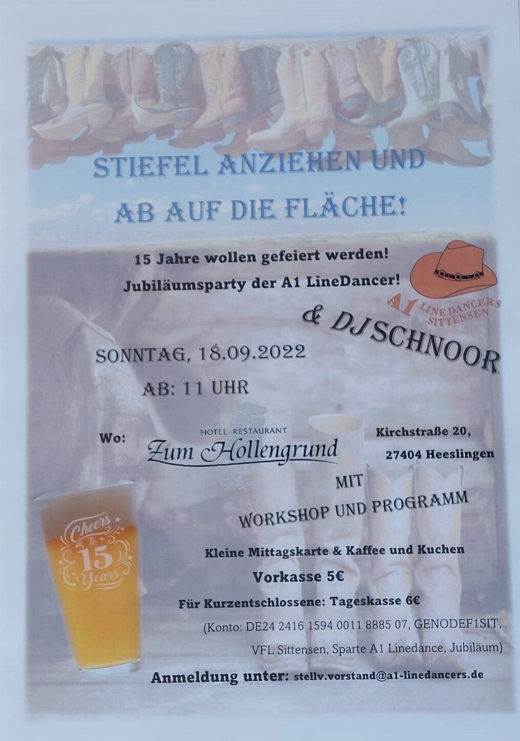 In diesem Jahr finden - mit 1-jähriger Verspätung - die niedersächsische Landesmeisterschaft und das Breitensportturnier für Linedance in Sittensen tatsächlich statt. Was für eine Freude!
